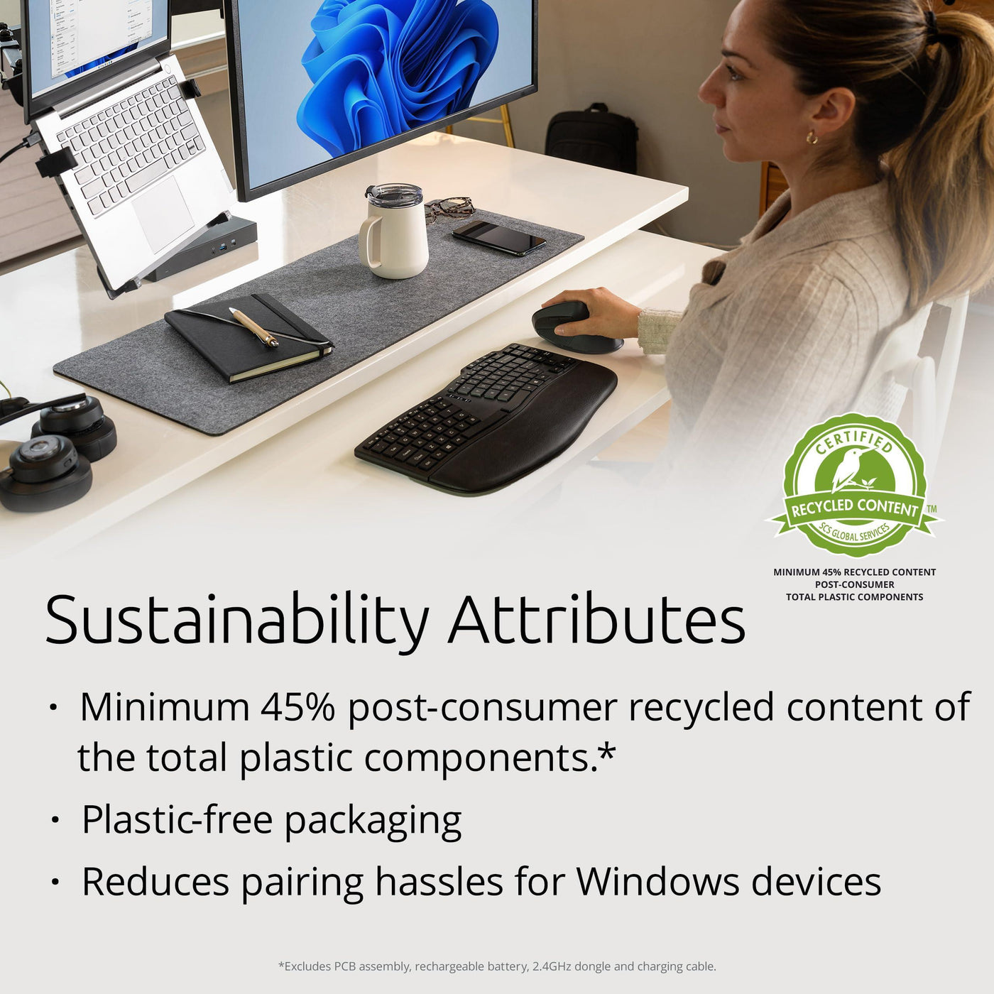 Details: For professionals wanting to elevate their productivity and reduce the fatigue associated with spending long hours typing and scrolling each day, the Pro Fit Ergo KM675 EQ Wireless Desktop Set supports all-day comfort and productivity with style. Built with your wellbeing in mind, the ergonomic designs promote proper hand and wrist posture, ensuring a typing and scrolling experience that is as effortless as it is comfortable. Complementing a modern workspace, the Pro Fit Ergo Wireless Desktop Set is an ideal choice for professionals seeking to elevate their workspace with style, comfort, and performance.