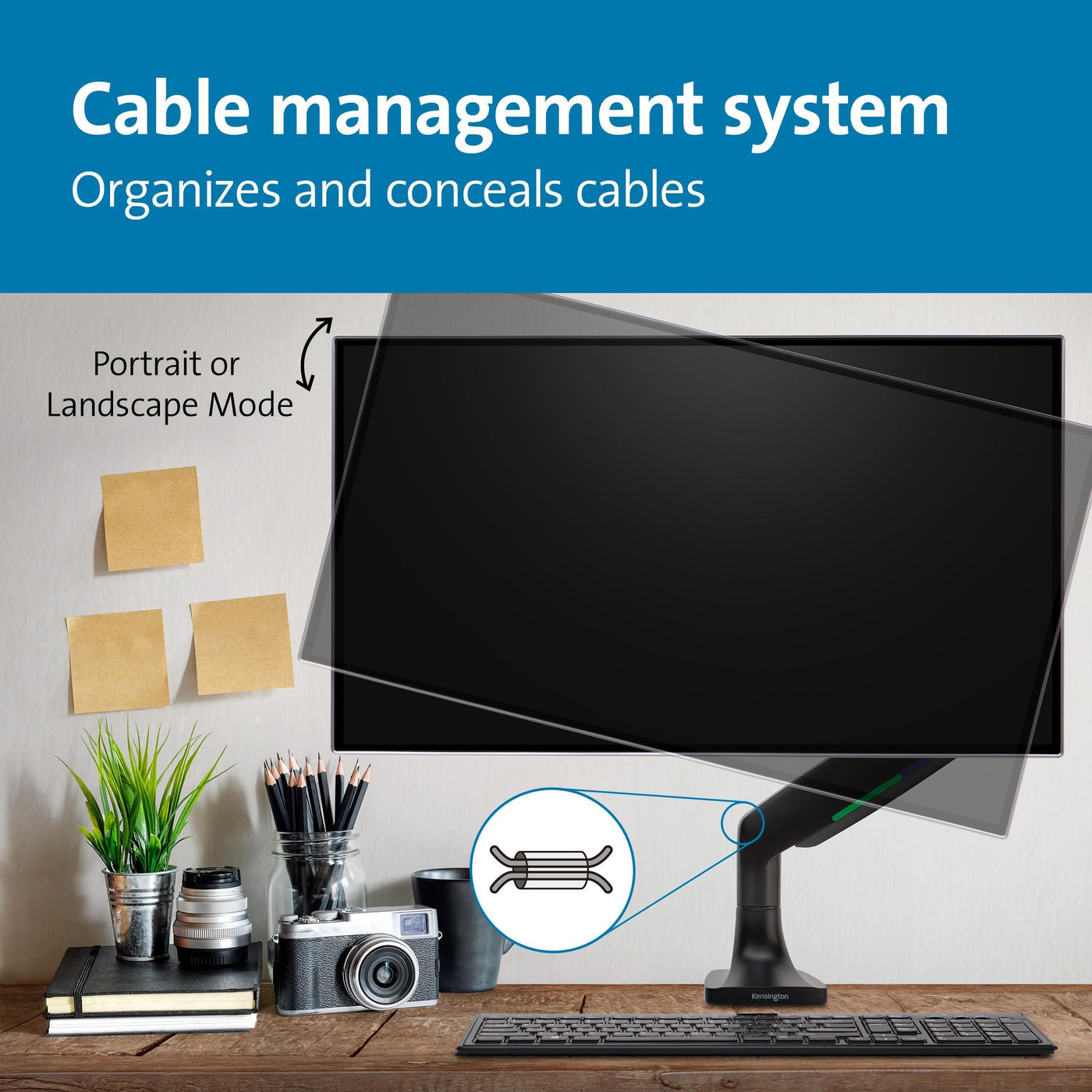 Details: The SmartFit One-Touch Height Adjustable Single Monitor Arm makes it easy to find the proper monitor height (and a neutral, comfortable posture) with its patented SmartFit System and fully articulating design. Tested to meet ANSI/BIFMA standards. depth, and angle effortless —from landscape to portrait mode. The product’s built-in Cable Management System organizes and conceals cables while the arm lifts your external monitor up and out of the way, decluttering and clearing valuable desk space at once..