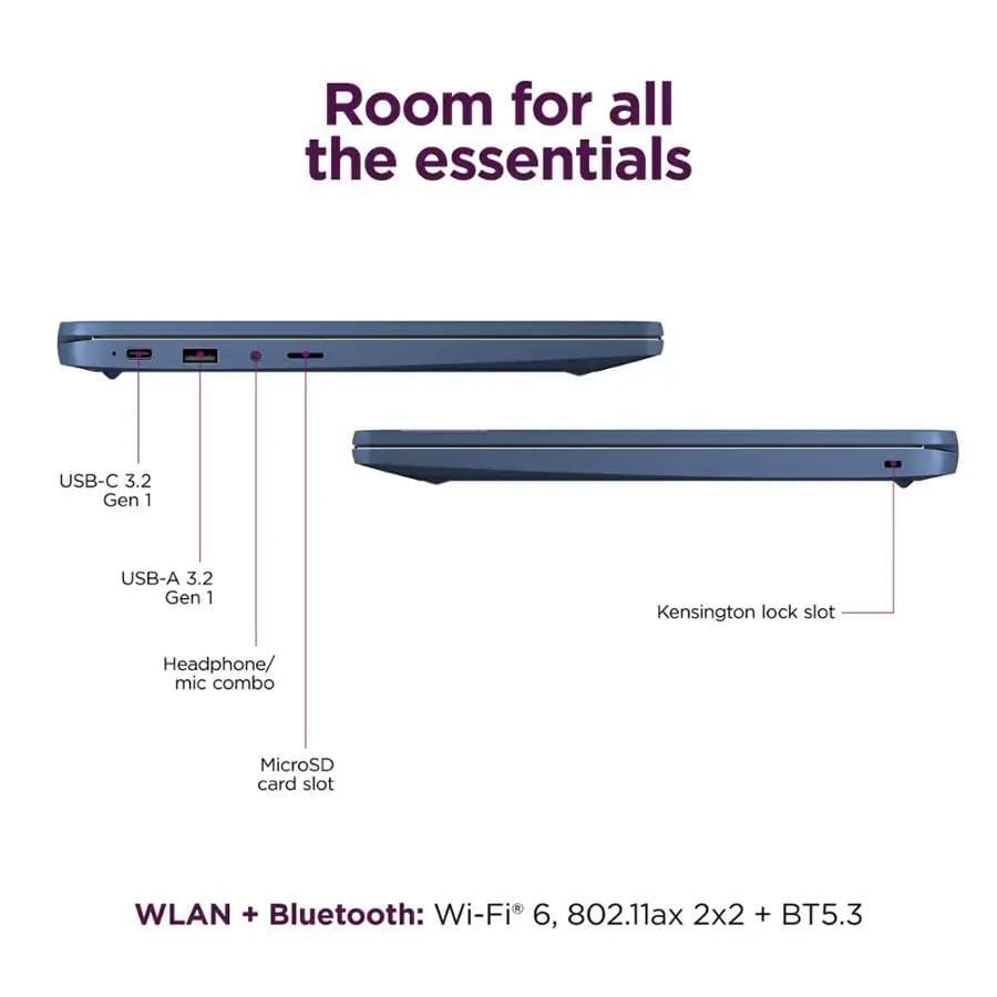 Lenovo IdeaPad Slim 3 Chromebook - 14'' Full HD (1920 x 1080) Display • 8-Core MediaTek Kompanio 520 CPU • 4GB RAM • 64GB eMMC & 256GB Micro SD Card • Wi-Fi 6 • for Business Student • Chrome OS • Blue Sale