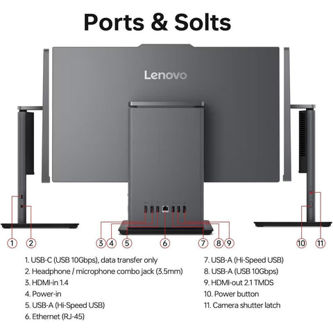 - 【Ports】 1x USB Type-C 10Gbps signaling rate (data transfer only), 2x USB Type-A (Hi-Speed), 1x USB Type-A (10Gbps), 1x headphone/microphone combo (3.5mm), 1x RJ-45 Ethernet, 1x HDMI-out 2.1 TMDS, 1x HDMI-in 1.4