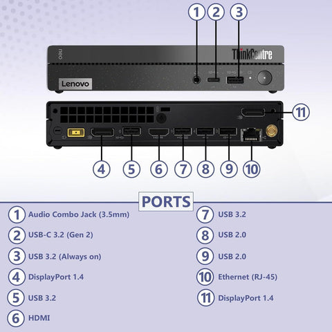 - Lenovo ThinkCentre neo 50q Gen 4 Tiny Desktop Computer helps you to maximize your desktop space while allowing you to run a variety of applications with 13th Gen Intel Core i5-13420H processor, 8C (4P + 4E) / 12T, P-core 2.1 / 4.6GHz, E-core 1.5 / 3.4GHz, 12MB. Measuring about 7 x 7 inches with a 1.4 inch depth, this incredibly compact computer system fits almost any location.