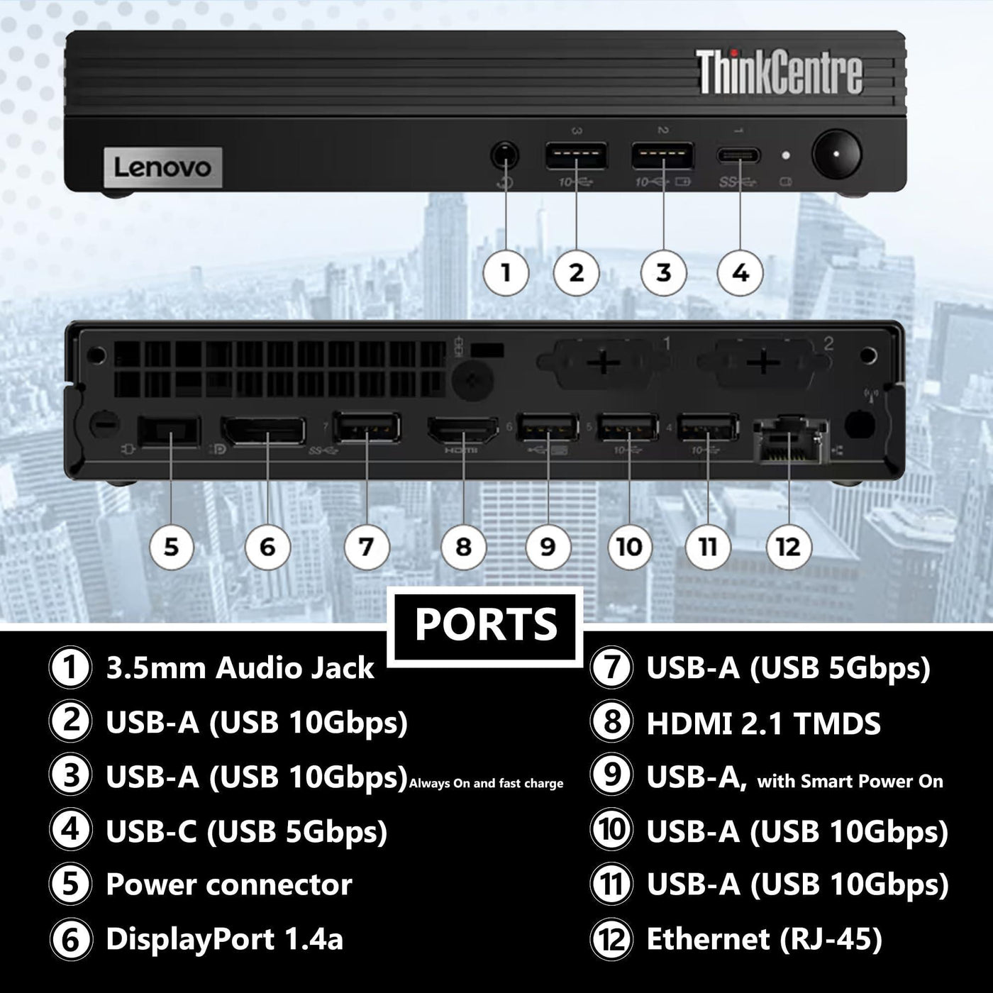 Lenovo ThinkCentre Tiny M70q Gen 5 Intel 10-Core i5-14400T (Beat i7-13700T), 16GB DDR5 RAM, 512GB NVMe, WiFi 6E, Bluetooth, RJ-45, DP Port, HDMI, W11P, Business Desktop, 3 Yr Wty