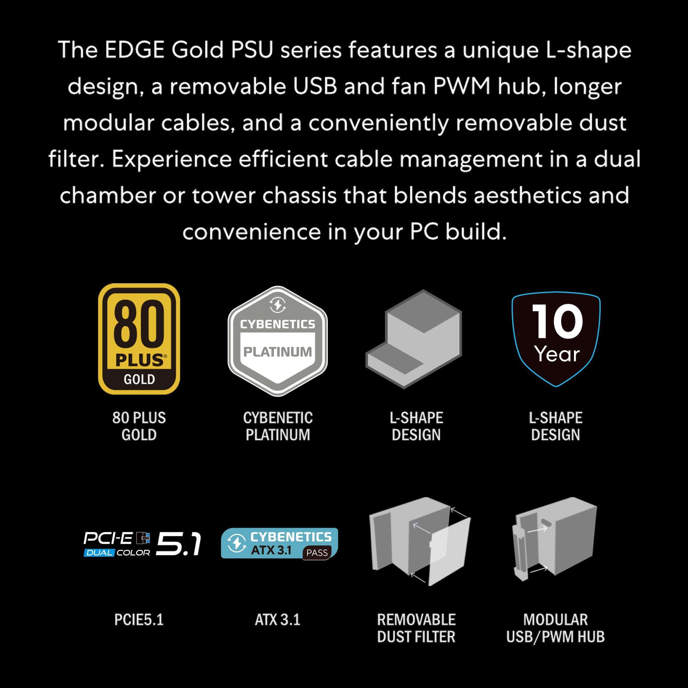 - High Efficiency & Low Noise: Certified with 80 PLUS Gold and Cybenetics Gold for efficiency, ensuring optimal performance without the distraction of noise.