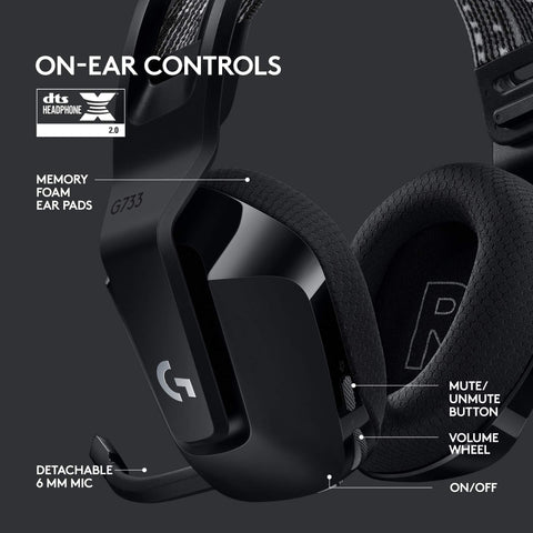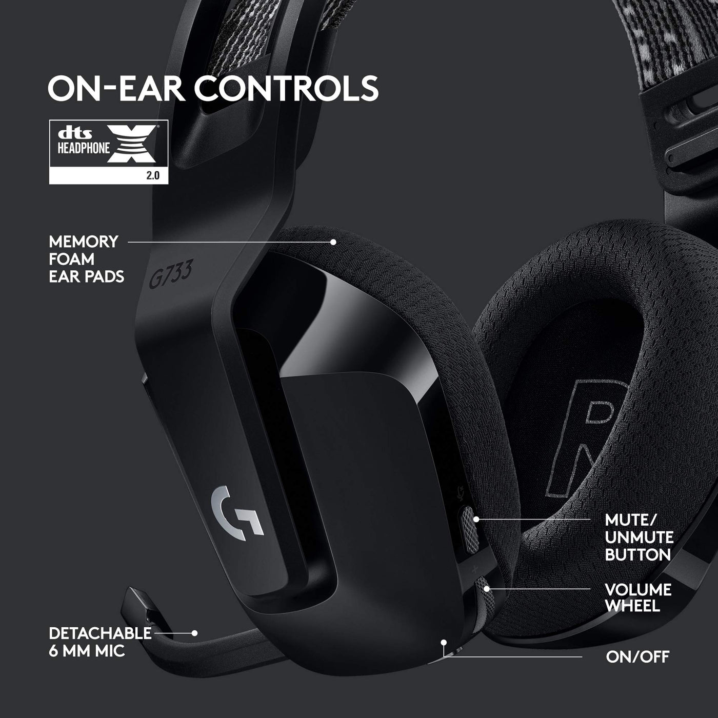 Details: Meet the Logitech G733 Lightspeed Wireless Gaming Headset, a wireless PC gaming headset designed to suit your style and deliver top-tier performance. Embrace total wireless freedom with 2.4 GHz Lightspeed technology, offering a reliable 20-meter range and up to 29 hours of battery life. Personalize your look and sound in G HUB with dual-zone, front-facing Lightsync RGB lighting and real-time Blue VO!CE mic filters. Equipped with advanced audio technologies, including 40 mm PRO-G audio drivers, internal acoustic chambers, and DTS Headphone: X 2.0; the G733 delivers precise, reduced distortion sound that elevates your gaming experience. Choose from four vibrant colorways and enjoy lasting comfort with a reversible suspension headband, dual-layer memory foam earcups, and a lightweight 278 g design. Whether you’re using it as a gaming headset for PC, a PS5 headset wireless, or a PlayStation headset with a built-in mic, the G733 ensures seamless communication during gameplay. Compatible with multiple platforms, this flexible wireless headset is your ultimate choice for immersive gaming, streaming, and everyday use.