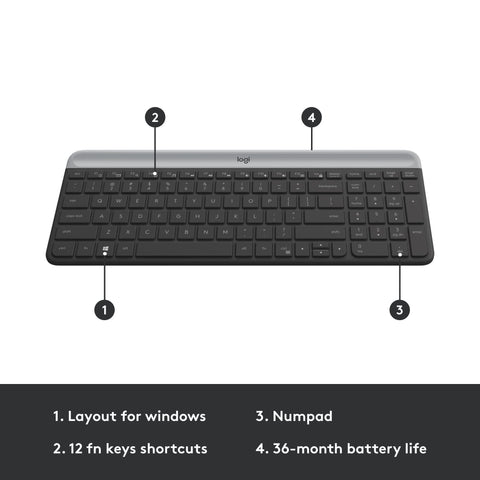- Logitech MK470 cordless combo features a compact modern designed keyboard with low-profile scissor keys, a number pad and a layout optimized for Windows