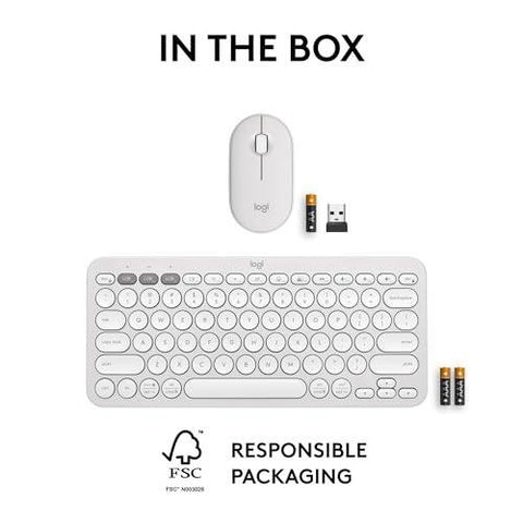 Details: Defy Boring with the iconic Pebble 2 combo. The slim wireless keyboard and mouse combo comes in a choice of fresh, matching colors – made with recycled plastic (1). Pick the one that suits your vibe. The Pebble 2 combo’s minimalist, sleek, and lightweight keyboard and mouse design makes it as iconic as you and super portable to take wherever you go. Easily hop across devices and switch between up to 3 wireless devices across OSs (Windows, macOS, iPadOS, ChromeOS, Android) with a press of a button, or use the included Logi Bolt receiver. Personalize the mouse’s middle button (2) to assign shortcuts for your favorite apps like shuffling your Spotify playlist or sending emojis on WhatsApp and customize the 10 keyboard Fn shortcut keys to work how you want and save time with shortcuts in Logi Options+ App (2). The wireless keyboard also features Fn shortcut keys such as screen capture, search, voice dictation, and emoji menu to free up your time. Let your work speak louder than your typing and clicking with Pebble 2 Combo. The Pebble Mouse 2 M350s is a quiet mouse with Silent Touch Technology that reduces click noise by 90%(3). Type quietly with the keyboard’s low-profile keys for laptop-like typing. Get hours of use with the Bluetooth keyboard coming with a 3-year battery (4) and the Bluetooth mouse with a 2-year battery (4) to keep you going for longer. Batteries included.