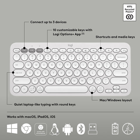 - Easily Hop Across 3 Devices: Use Bluetooth to connect up to 3 wireless devices across OSs and switch between them with one click of the Easy-Switch button