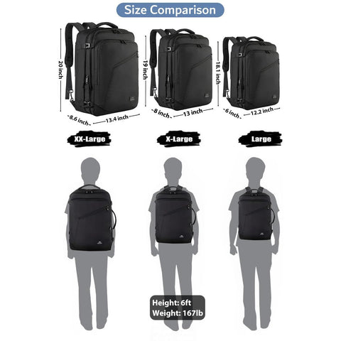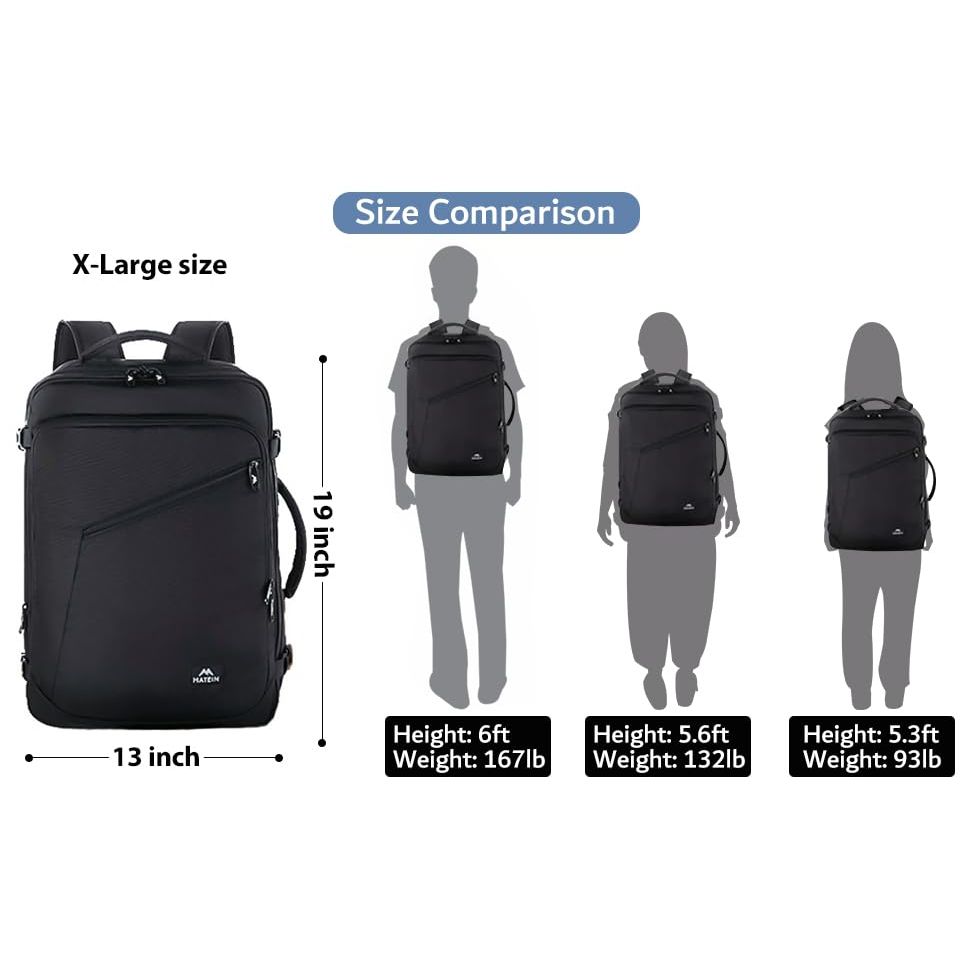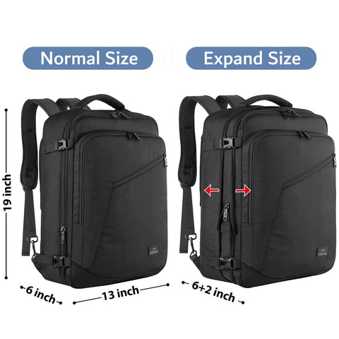 - Expandable & Large Capacity: This extra large travel backpack with expandable feature offers you more packing capacity. Unzipping to get 45L storage then can easily hold packing cubes, make-up bag, outfits, camera bag and gear, etc. It fits overhead bin while on state of standard carry on size, is suitable for men, women, weekend traveler, or occasional vacationer. This versatile luggage backpack also meets airline carry-on requirements for airlines such as Easy Jet, Spirit, Jet Blue