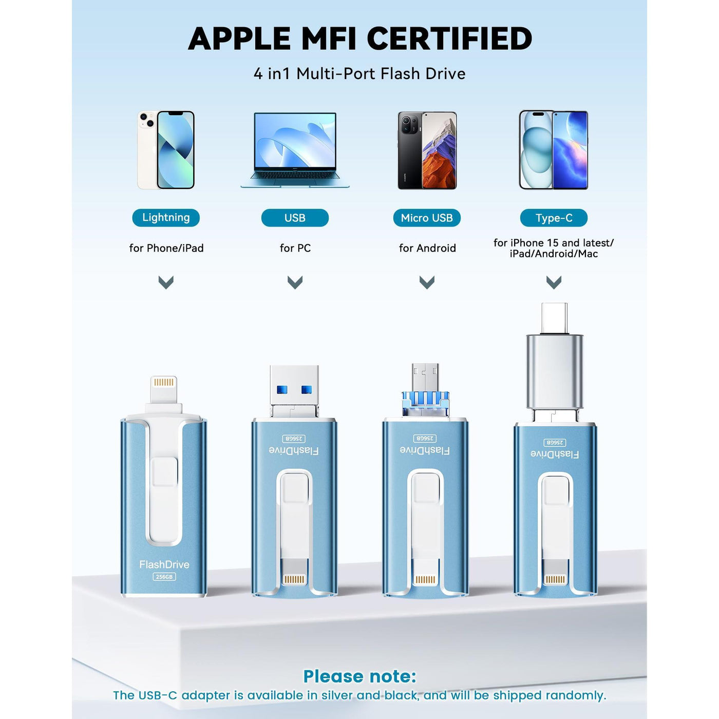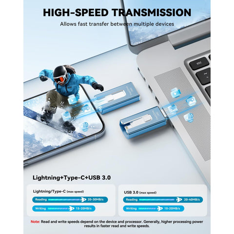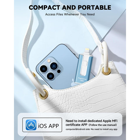 MFi Certified 256GB Flash Drive for iPhone iPad, Photo Stick for External Memory Storage, Easily Back Up and Save Photos Videos, USB Memory Stick Thumb Drive for iPhone/iPad/Android/PC (Blue, 256GB) Sale