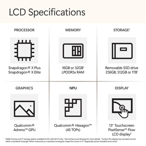- [Introducing Surface Pro 13” Touchscreen Display] — The most flexible, powerful 2-in-1 laptop and tablet with AI-accelerated Copilot+ experiences. Surface Pro 11th Edition reimagines the laptop.