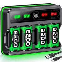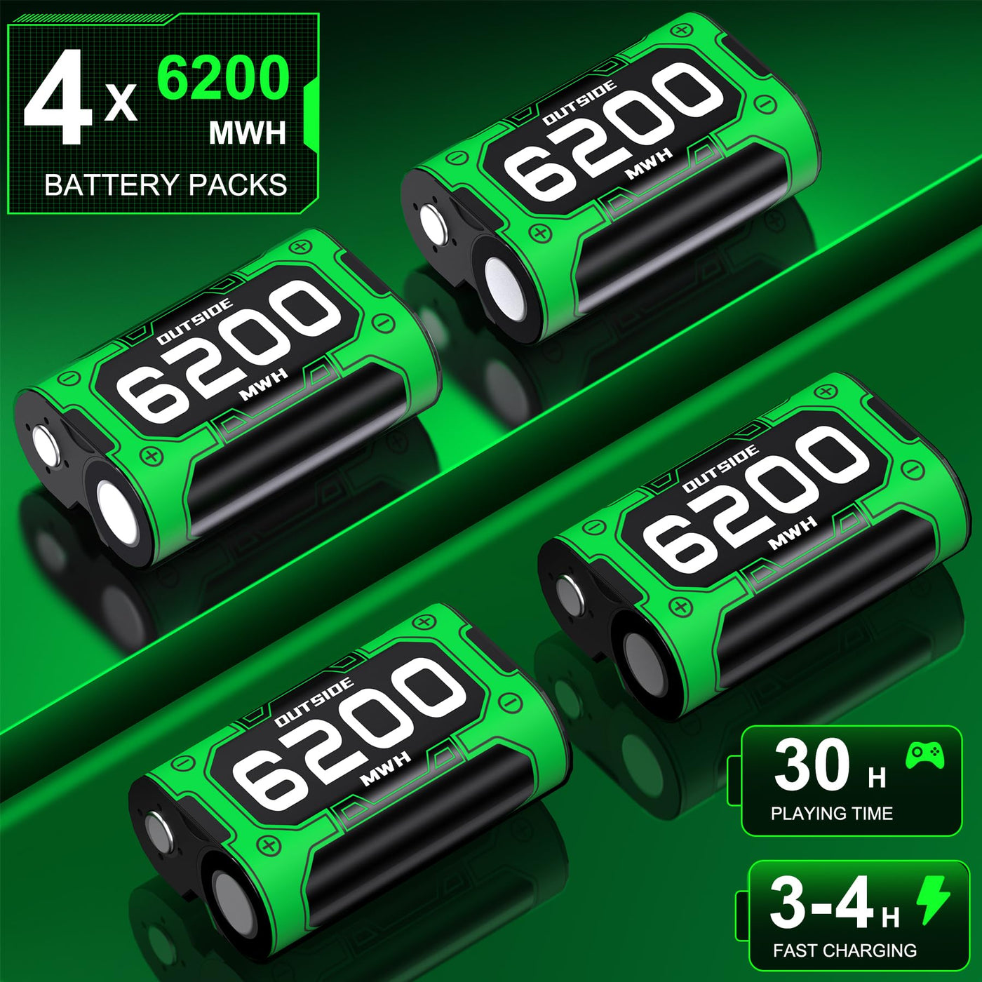 Mocagen 4 Pack 6200mAh Rechargeable Battery Pack for Xbox Series X|S/Xbox One/Elite Controller Charging Station with Touch-Sensor Light Strip, 30+hrs Playtime, Overcharge Protection Sale
