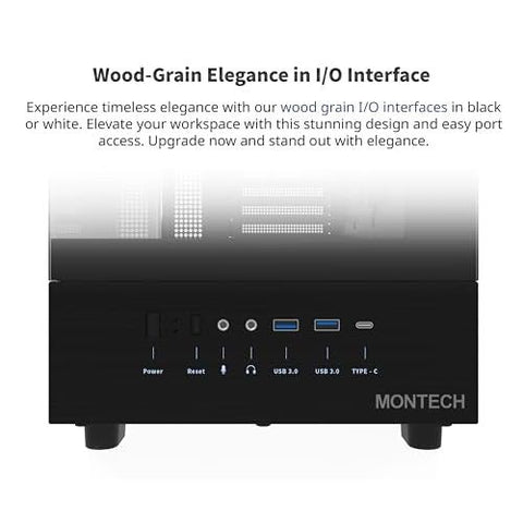 Details: MONTECH XR, ATX Mid-Tower PC Gaming Case, 3 x 120mm ARGB PWM Fans Pre-Installed, Full-View Dual Tempered Glass Panel, Wood-Grain Design I/O Interface, Support 4090 GPUs, 360mm Radiator Support, Black
