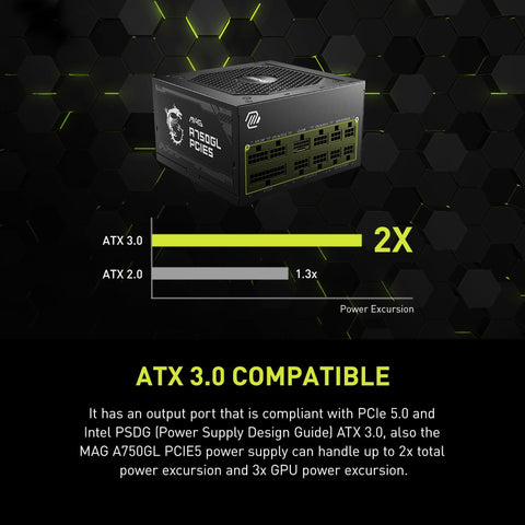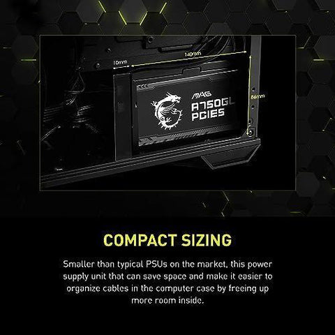 Details: MSI MAG A750GL PCIE 5 Gaming Power Supply - Full Modular - 80 PLUS Gold Certified 750W - Compact Size - ATX PSU.