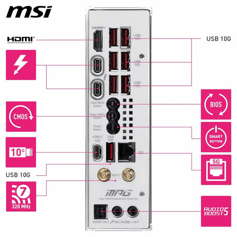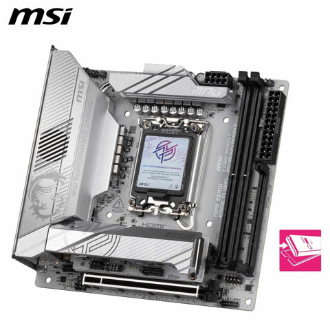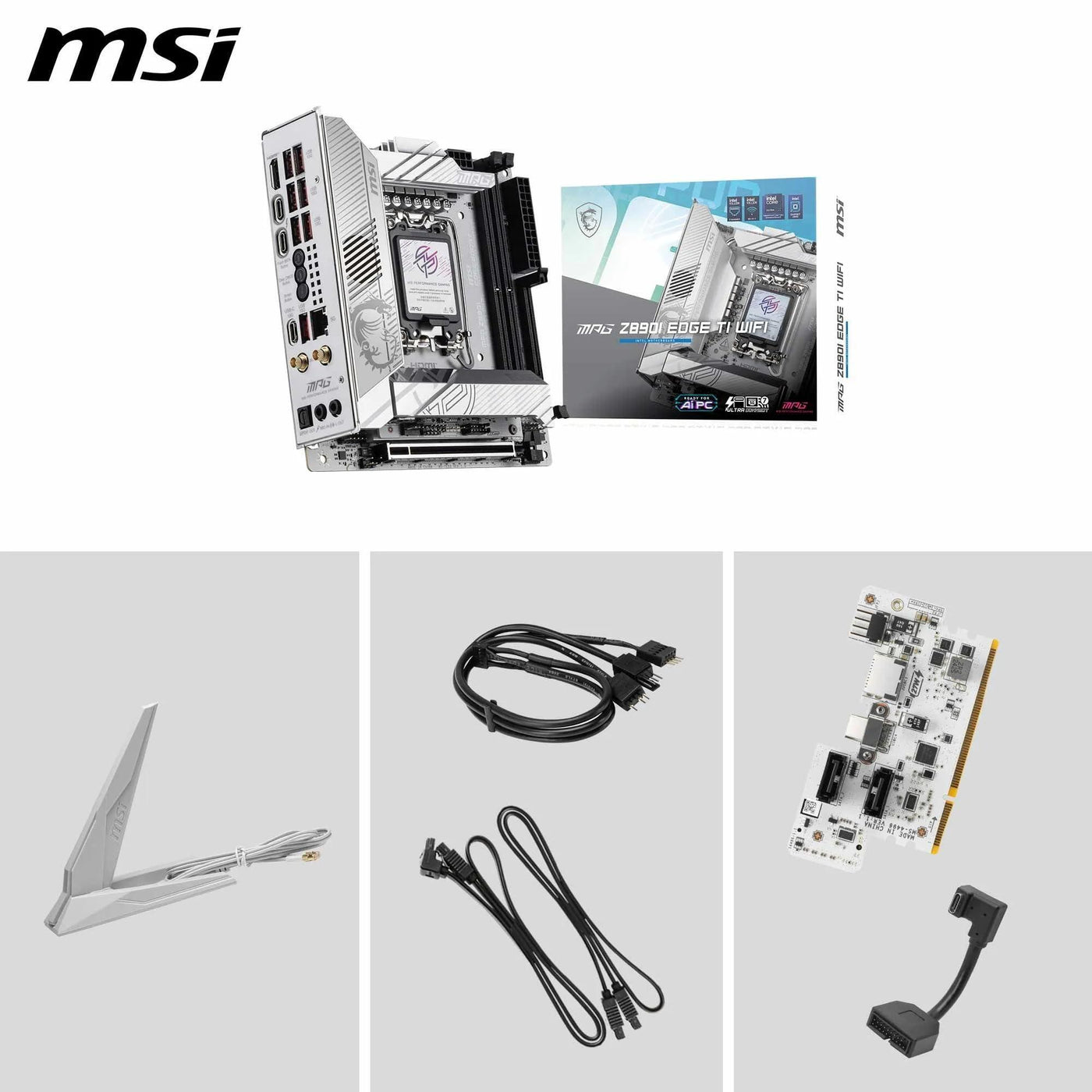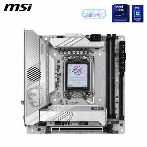 Details: MPG Z890I EDGE TI WIFI: Game In Style Designed for gaming on the Intel Z890 chipset (Intel Core Ultra Processors (Series 2), LGA 1851), the MSI MPG Z890I EDGE TI WIFI motherboard includes premium GPU support with PCIe 5.0 x16 slot, improved DDR5 memory support (8600+ MT/s OC), and extensive M.2 Gen5 storage options (with Shield Frozr). To power the latest Intel Core Ultra Processors (Series 2), the MPG Z890I EDGE TI WIFI is equipped with a direct 10 phases power design (110A, SPS) VRM , augmented with multiple passive cooling features. MPG Z890I EDGE TI WIFI features durable 14-layer server-grade PCB and PCIe Steel Armor to support the primary graphics card slot. Connectivity includes full-speed Wi-Fi 7 and Bluetooth 5.4 technology, Intel Killer 5G LAN, Thunderbolt 4 Type-C (40Gbps) with 8K@60Hz display support, and 7.1 USB High Performance Audio. For gamers looking for an Intel Core Ultra Processors (Series 2) platform that unites PCIe 5.0 x16 graphics card architecture, improved DDR5 support, and M.2 Gen5 storage options into one elegant design, the MSI MPG Z890I EDGE TI WIFI is the perfect ITX gaming motherboard.