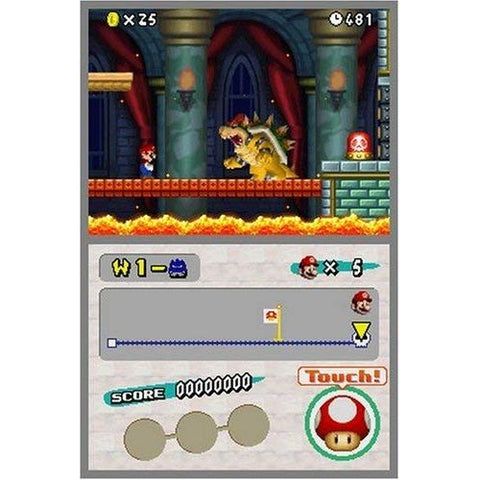 Details: It's been more than 20 years since Super Mario Bros. first arrived, and now Mario and Luigi are back in an all-new platformer for Nintendo DS. Boasting incredible 3D graphics to accompany classic 2D gameplay, this fast-paced adventure will have Mario fans cheering. New Super Mario Bros. features eight all-new worlds, each filled with extra levels, hidden paths, and secrets galore. It's possible to complete the game without visiting every world, which means you'll have to track down many alternate exits to visit every nook and cranny in the game.