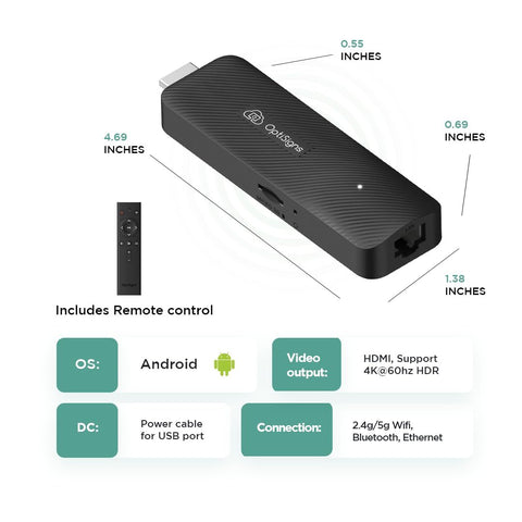 - Small and Powerful, easy install, no mounting brackets and screws, Amlogic 4 Core CPU, 2G DDR4 RAM, 16 GB eMMC, 4K HDR support, AV1 decoding