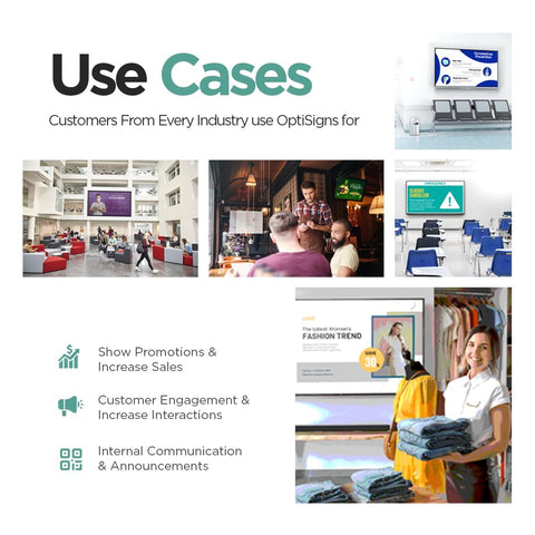 - Easy Setup and manage from anywhere, pre-installed OptiSigns Player, manage your screen from OptiSigns portal or OptiSigns Admin app.