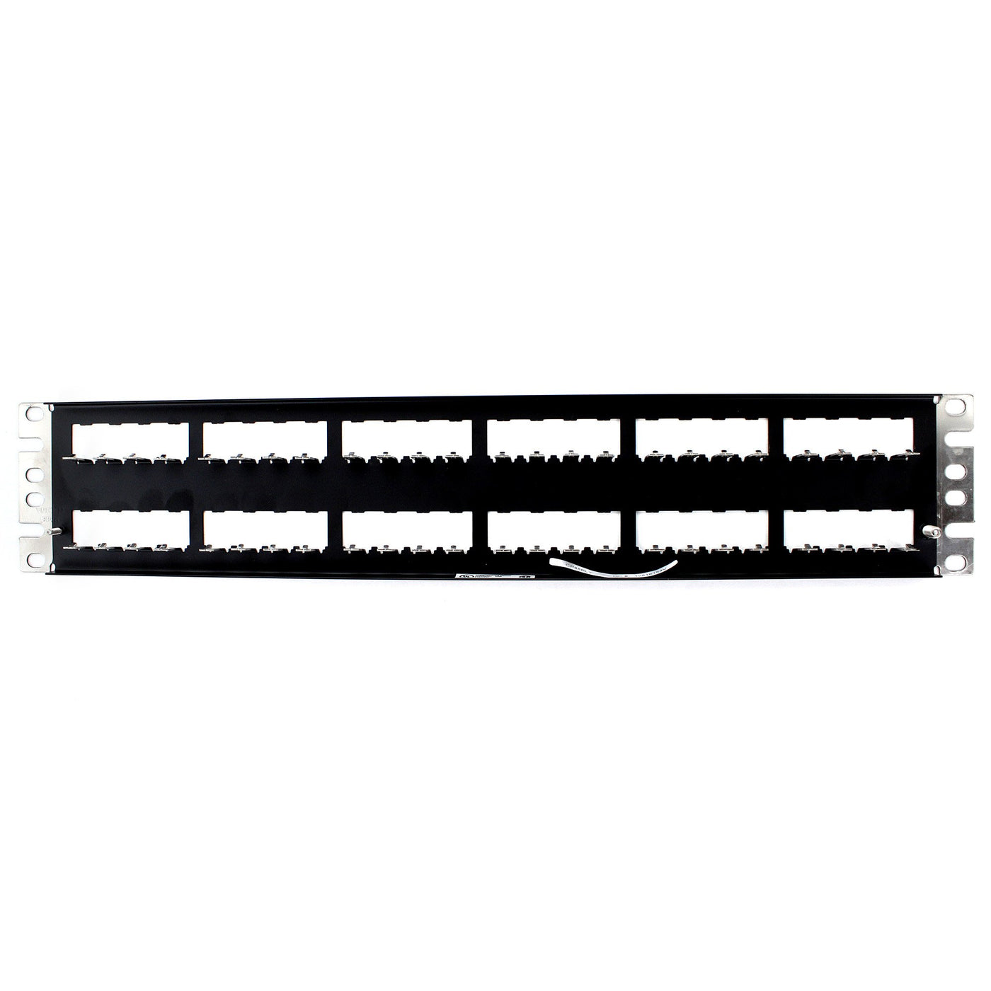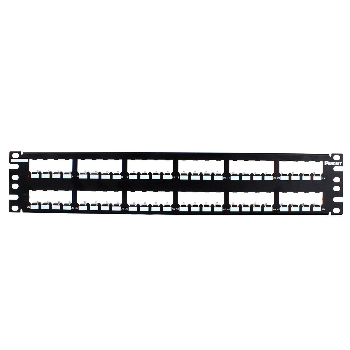 Details: 48-port all metal modular patch panel, 2 RU. Accepts Mini-Com Modules for shielded applications. High-density patch panels offer 48 ports in 1 rack unit for maximum port density in a shielded application. High-density patch panels made of plastic with rear snap-in faceplates and a metal bonding strip. High-density patch panels include pre-numbered ports for easy port identification. Metal patch panels provide write-on areas for port identification. Metal patch panels made of stainless steel. CPT removal tool provided with metal panels for easy moves, adds, and changes of shielded jack modules. Mount to standard TIA/EIA 19-Inch rack or 23-Inch racks with optional extender bracket. Select panels include strain relief bars. Panduit is a world-class manufacturer committed to innovation and excellence. Today, Panduit is recognized as a leading manufacturer of high-quality products for wiring and communications applications. This reputation gives the company a powerful advantage in today's competitive worldwide marketplace.