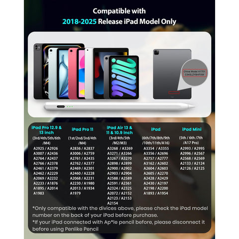 Pencil for Apple iPad A16 10th Generation, Fast Charge Stylus Pen for 2025-2018 iPad A16/11-6th Gen, Air 11"/13" M3/M2/5th-3rd, Pro 13"/11"/M4/12.9", Mini A17 Pro/6/5th Palm Rejection Tilt Sensitivity