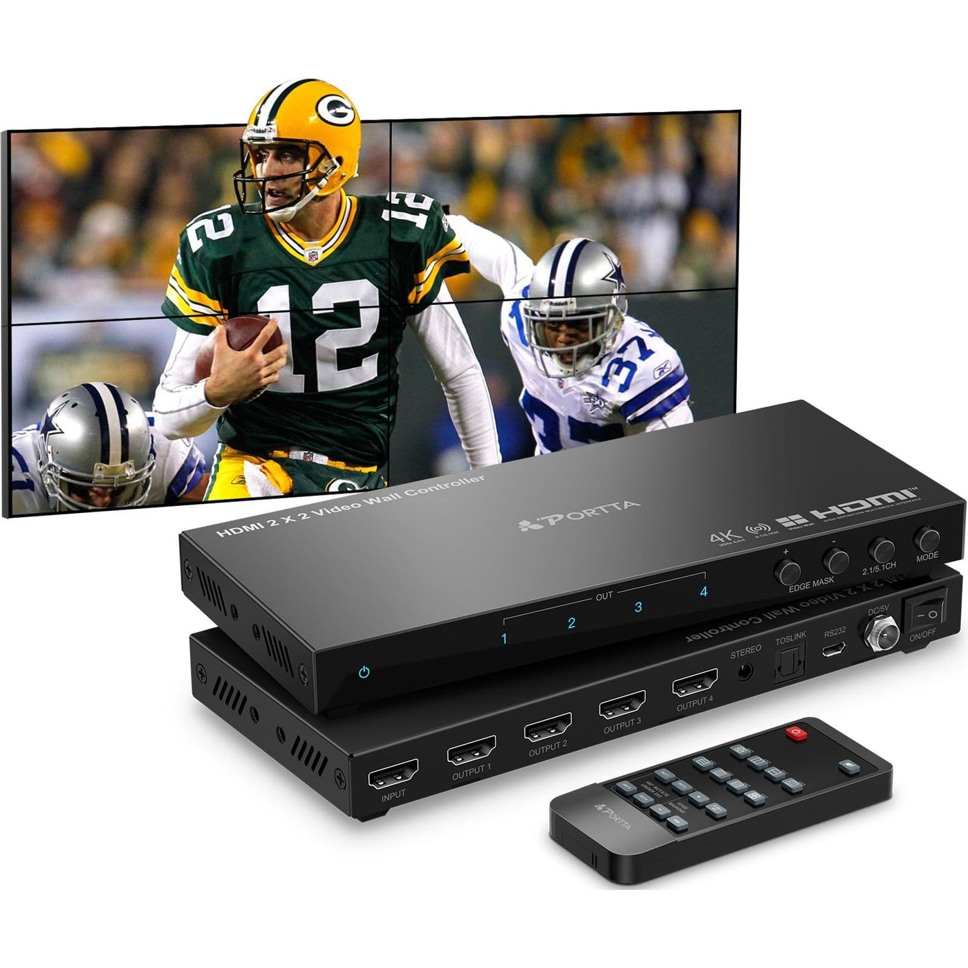 - 【Broad Compatibility】The PORTTA HDMI 2x2 Video Wall Controller is ideal for advertising, entertainment, and information display. It is compatible with PC, PS4, PS4 Pro, Blu-Ray Players, computers, laptops, HDTVs, projectors, monitors, and more.