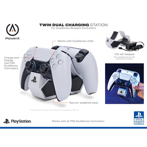 PowerA Twin Charging Station for Dualsense Wireless Controllers, Charge, Sony PlayStation, PS5, Officially Licensed Sale