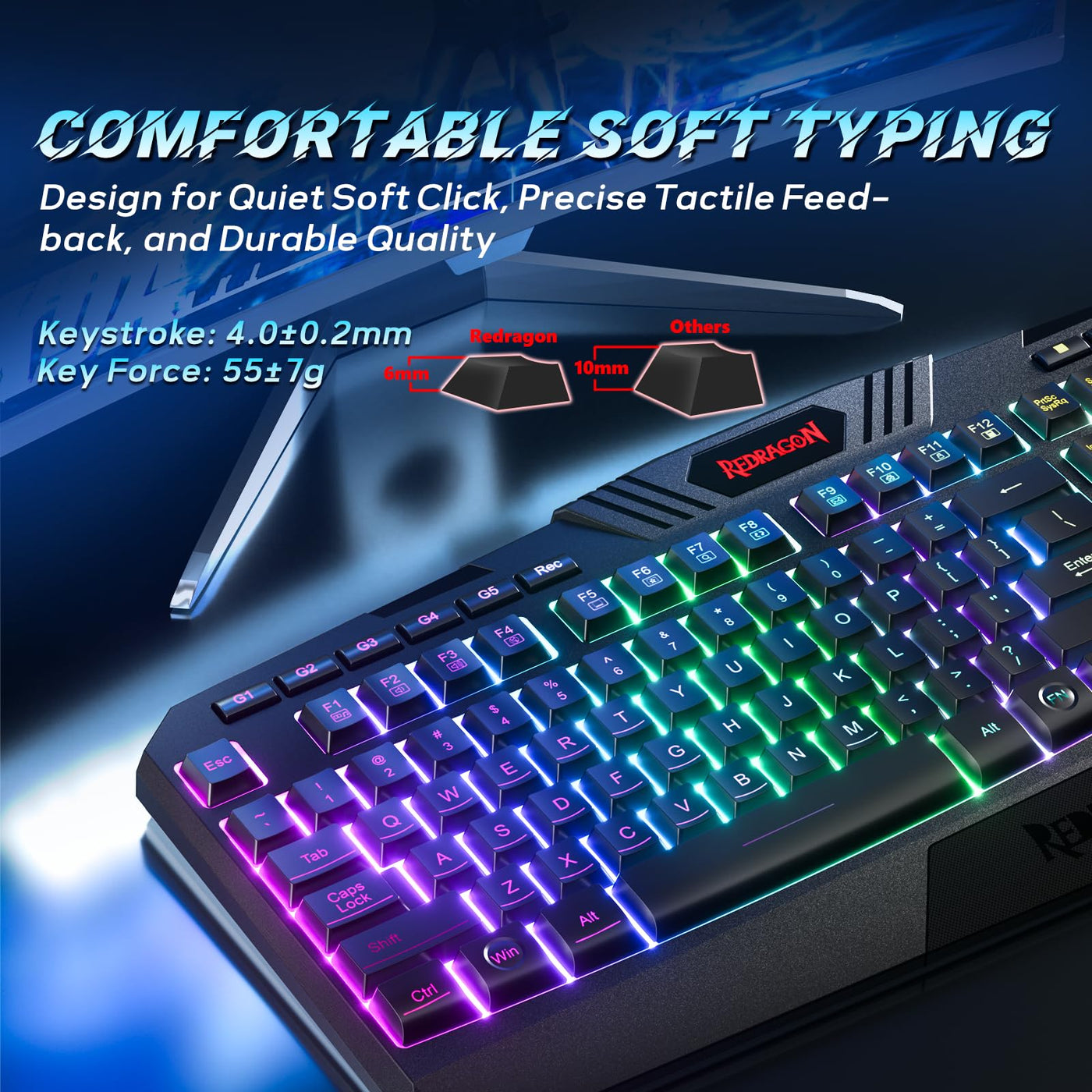 - 🌟PC GAMING KEYBOARD AND GAMING MOUSE COMBO: Includes Redragon RGB Backlit Computer Gaming Keyboard and Red Backlit Programmable Gaming Mouse. ALL-IN-ONE PC GAMER VALUE KIT, Fantastic for Gamers (New Improved Version)(NOTE: The keyboard's backlit is True RGB, but the mouse is single Red Backlit)