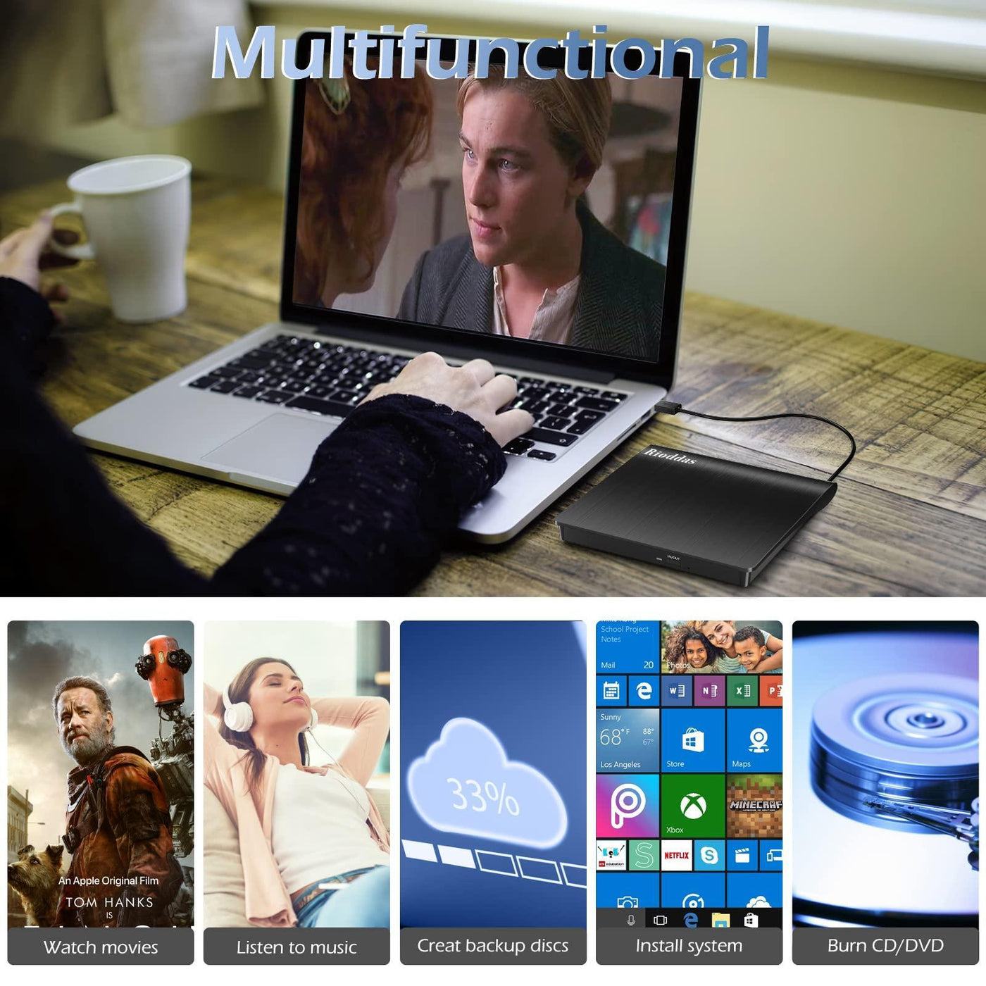 - Wide Compatibility. This external USB CD/DVD drive works with Windows 11/10/8.1/7/Vista/XP/2000/ME/98, most laptops/desktops (HP, Dell, Lenovo, ASUS, Samsung, etc.), and Linux systems. Fully supports MacBook Pro/Air, iMac, and Mac mini/Studio (macOS 10.16+). For desktops, use rear USB ports for stable power. Supported Formats: CD-ROM/R/RW, DVD-ROM/R±RW/R±DL, VCD/SVCD. Not Compatible: ChromeOS, smartphones, tablets, TVs, projectors, vehicles, some Surface models, and Blu-ray/4K discs.