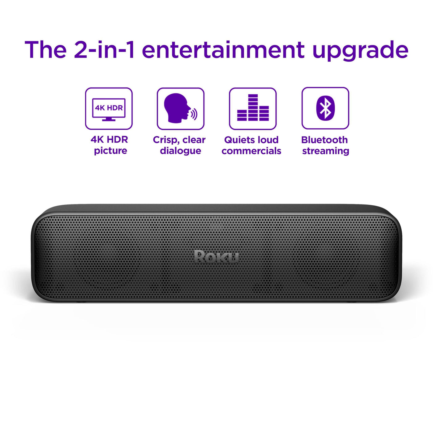 Details: The 2-in-1 Roku® Streambar® SE is the easiest way to add big-screen entertainment to any TV—even small or old ones. 4K streaming is a snap with guided setup and lightning-fast apps, and you’ll never miss a great line of dialogue with Enhanced Speech Clarity. Plus, pair your favorite wireless headphones or stream music from your mobile device with Bluetooth. With a massive selection of free, live, and premium TV at your fingertips, it's easier than ever to watch what you love in any space you call home.
