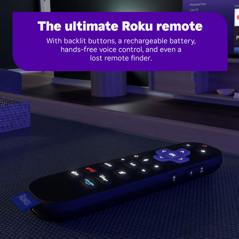 - The ultimate Roku remote: The rechargeable Roku Voice Remote Pro offers backlit buttons, hands-free voice controls, and a lost remote finder.