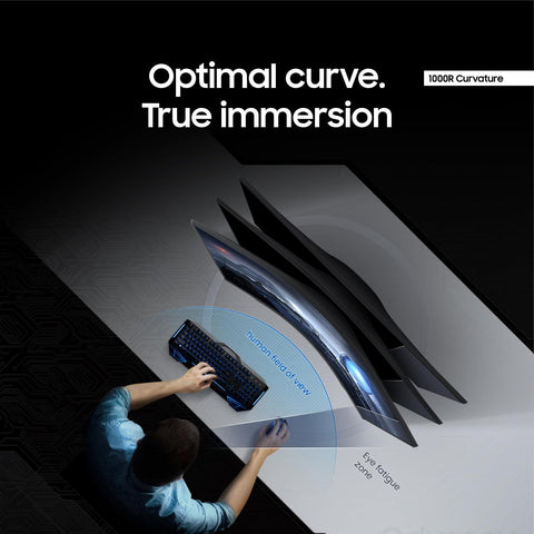 - OPTIMAL CURVE, TRUE IMMERSION: The all-encompassing 1000R display fills every part of your peripheral vision and draws you right into the character's shoes; Experience a level of gaming more heart-pounding than ever before