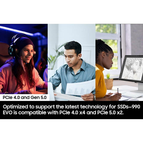 - PCIe 5.0 INTERFACE: Optimized to support the latest technology for SSDs 990 EVO is compatible with PCIe 4.0 x4 and PCIe 5.0 x2. This means you get more bandwidth and higher data processing and performance. Overall, it does more to support smooth storage with less power consumption.