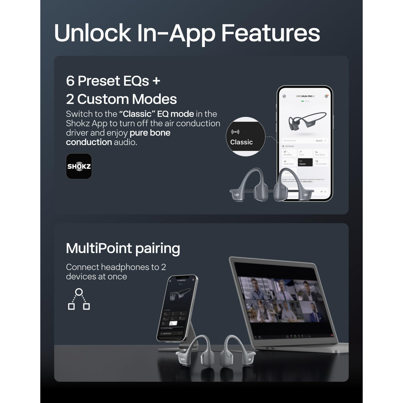 SHOKZ New OpenRun Pro 2 - Open-Ear, Bone Conduction Sport Headphones - with Reflective Strip - Sweat Resistant, Workout Headphones - Secure, Wireless, Comfortable Fit-Deep Bass and Smart Mic App