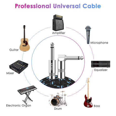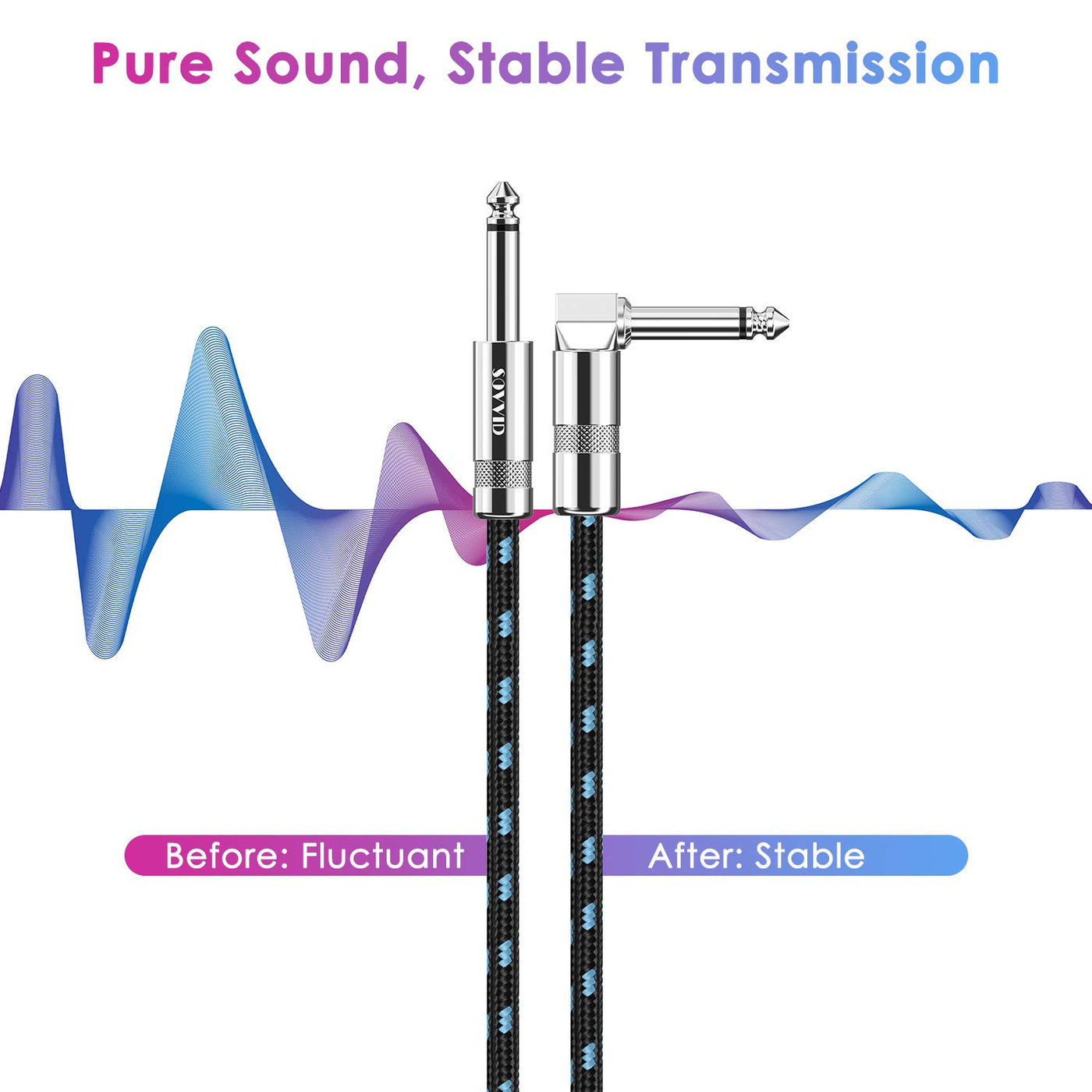 Sovvid 10FT Instrument Cable - Electric Guitar & Bass Cable with Right Angle 1/4 Inch Connector - Black & Bluetest Sale