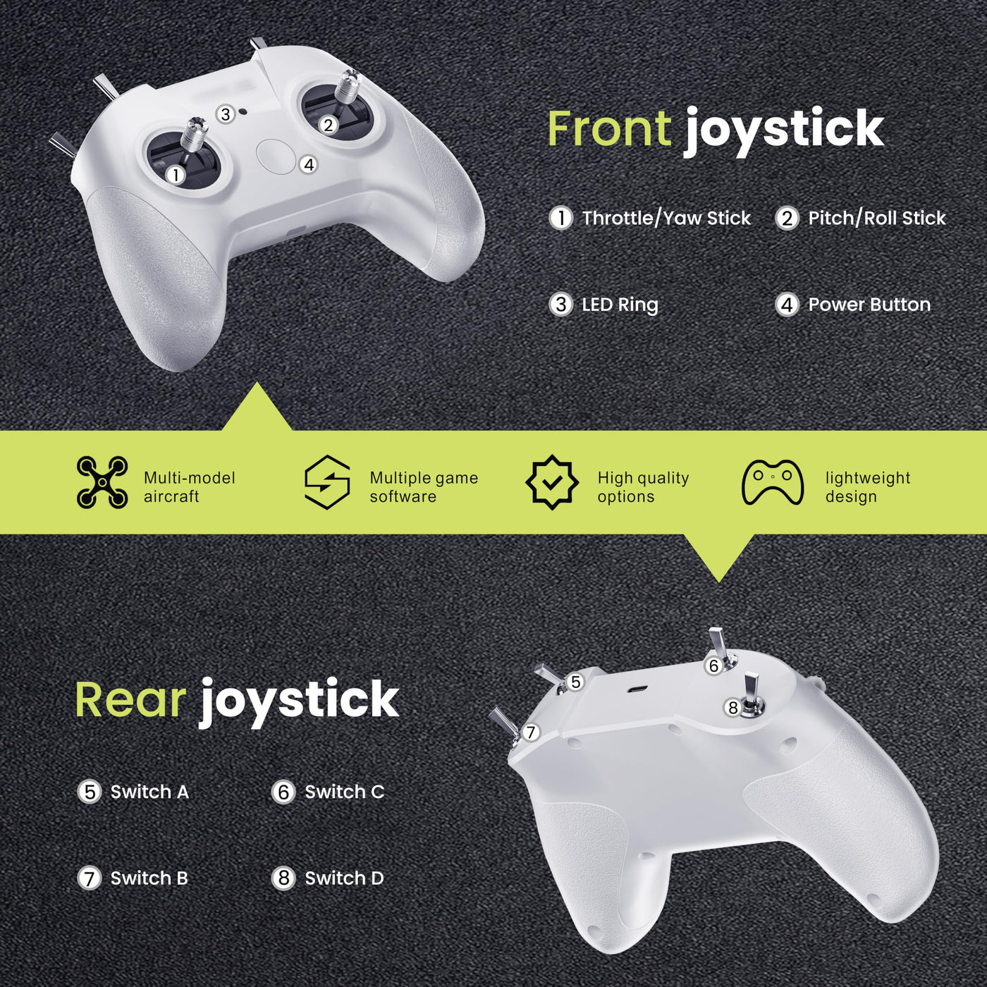 - 【Professional FPV Simulators Remote Controls】8-channel design specifically for FPV Drone flight training, high-sensitivity hall joysticks with only 0.8ms of delay for precise control. No need to worry about delays, power outages, or other malfunctions during high-difficulty flight training.