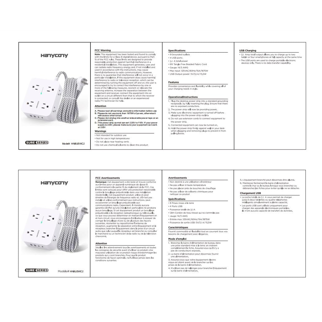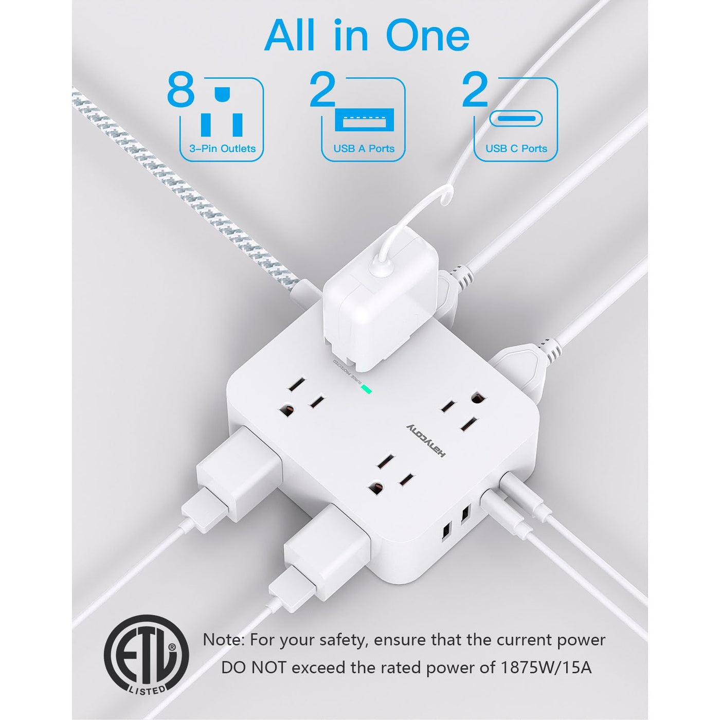 Surge Protector Power Strip - HANYCONY 8 Outlets 4 USB (2 USB C) Charging Ports, Multi Plug Outlet Extender, 5Ft Braided Extension Cord, Flat Plug Wall Mount Desk Charging Station for Home Office ETL Sale