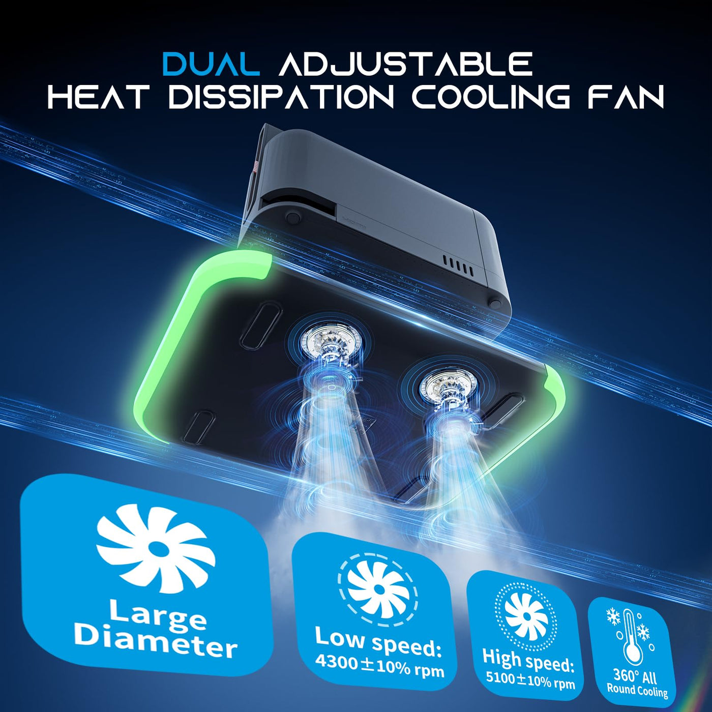- 【2 Adjustable Heat Dissipation Cooling Fan】Dual high-performance fans rapidly dissipate heat choose from low(4300rpm) and high speed(5100rpm), keeping your Switch 2 reliably cool under pressure and eliminating lag or slowdowns. Experience efficient and stable gaming marathon experience. Moreover,This nintendo switch 2 controller charger will significantly extending your console's lifespan and protecting it from heat damage. Stable non-slip 4 sides silicone base prevents accidental slides from desk.