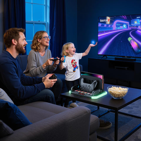 - 【Safety-Assured Charging】Advanced multi-protection chip safeguards your Switch 2 & Joy-Con controllers against over-current, over-voltage, overheating, and short circuits. Charge with absolute confidence with precision overcharge prevention intelligently stops charging at 100%, extending your controller's battery lifespan. Our smart chip ensures no energy stress during overnight sessions and our integrated safety system preventing damage from surges, faults, or excessive heat to ensure years of reliable performance.
