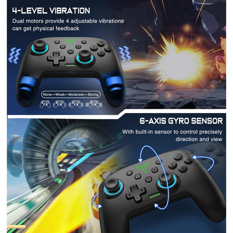 - 【VIBRATE & TURBO FUNCTION】 The controller for nintendo switch has dual vibration motors with 4-level precise vibration: none, weak, medium and strong which provide you excellent vibration feedback to enhance the game immersion. There are 3 adjustable speed: 5/s, 12/s or 20/s. You can customize the TURBO button, A/B/X/Y/L/ZL/R/ZR all buttons can be set to TURBO, take your game sessions up a notch with the switch Controller because of the customized TURBO. ( Only switch device has six-axis)