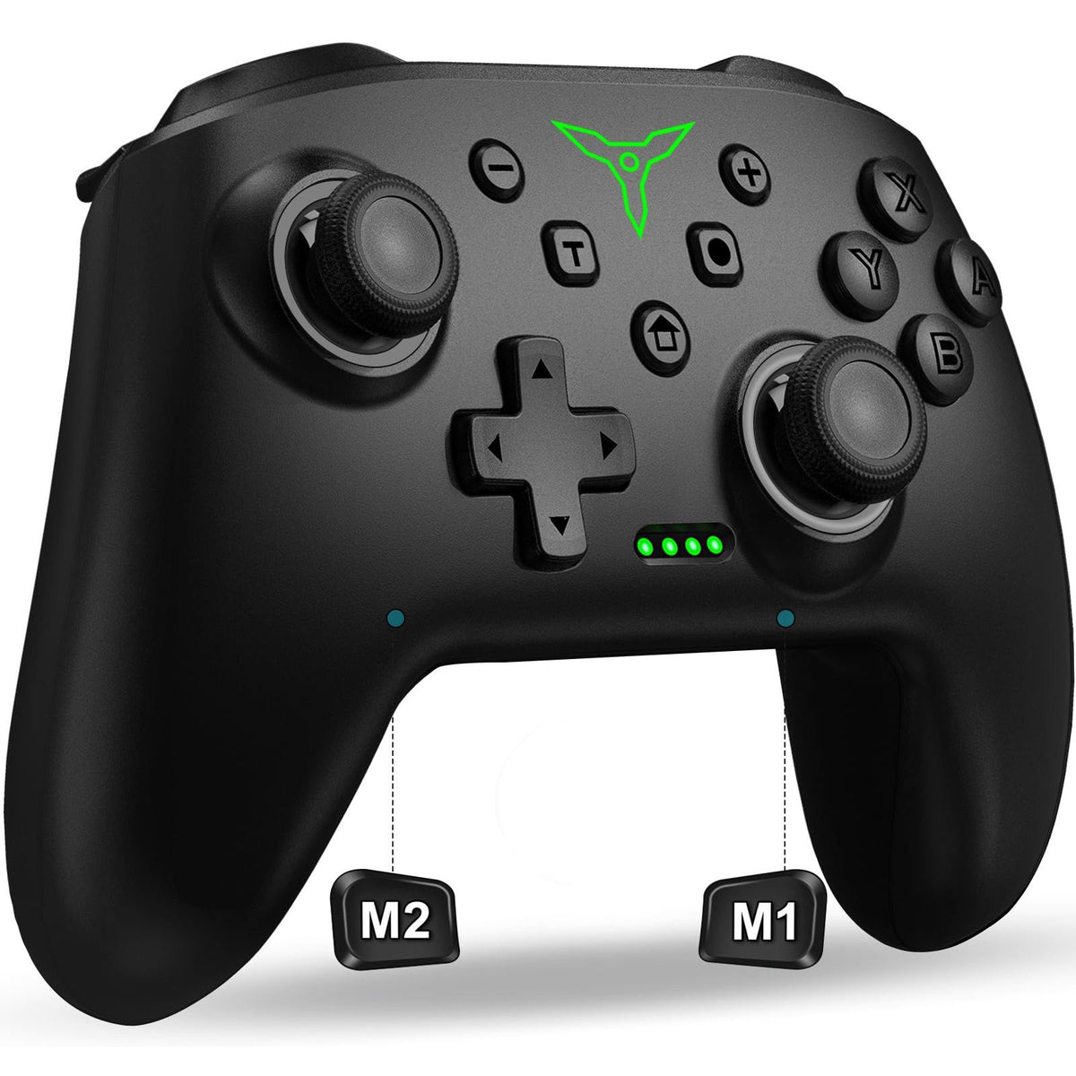 - 【PROGRAMMABLE FUNCTION for NINTENDO SWITCH CONTROLLER】Switch wireless controller with 2 back programming buttons, there are two modes, which are single programming or multi-programming. M1/M2= A+B+Y+L+ZL+R+ZR+D-pad, then you can use other fingers to operate more comfortably. Pro controller switch with programmable buttons help to minimize button abuse and stick clicking it can last more than several years with heavy use
