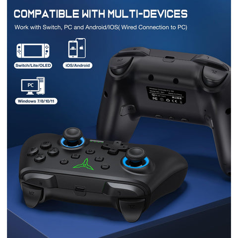 - 【COMPATIBLE WITH NINTENDO SWITCH CONSOLE/IOS/ANDROID/PC 】Upgraded switch controller not only compatible with Nintendo Switch Console, and also is available for iOS/Android/PC, greatly increasing the types of games that can be played. Switch Pro Controller supports wireless connection to play switch games, iOS MFI games(IOS 13.0 and above), Android HID games; also can be via USB wired connection with PC to support playing X-Input and Steam games.(Windows 7 and above)