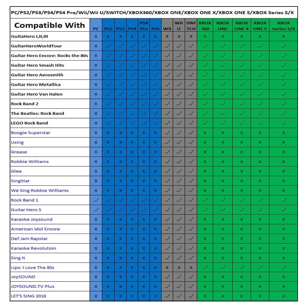 - π Accurate Voice Reproduction: With upgraded frequency response accurately reproduces the sound of your voice. it is the perfect design for all music games, rock band, guitar hero and karaoke games.
