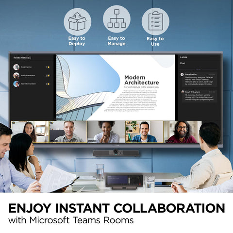 - EASY-TO-DEPLOY MICROSOFT TEAMS ROOMS SOLUTION: This bundle, featuring a nimble computing engine and intuitive touch console, ensures easy deployment and instant collaboration in any meeting room, providing a consistent, secure, and cost-effective Microsoft Teams Rooms experience.