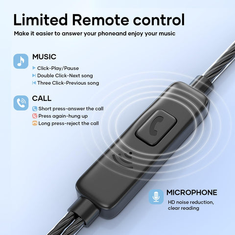 - [Stereo Sound Quality] - Headphones have excellent sound transmission performance, the Earbuds adopt a metal composite diaphragm and combination of heavy bass and stereo sound, maximum restoration of natural acoustic sound, so that the headphones wired can bring you high-quality music