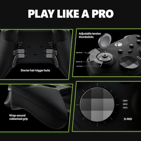 Details: Experience the Xbox Elite Wireless Controller Series 2 featuring adjustable-tension thumbsticks, wrap-around rubberized grip, and shorter hair trigger locks. Experience limitless customization with interchangeable components and exclusive button mapping options in the Xbox Accessories app. Save up to 3 custom profiles on the controller and switch between them on the fly. Swap thumbstick toppers, D-pads, and paddles to tailor your controller to your preferred gaming style. Stay in the game with up to 40 hours of rechargeable battery life and refined components that are built to last. Use Xbox Wireless, Bluetooth, or the included USB-C cable to play across Xbox Series X|S, Xbox One, and Windows. Designed to meet the needs of today’s competitive gamers, the Xbox Elite Wireless Controller Series 2 puts exceptional performance, customization, and durability where it matters most—in your hands.