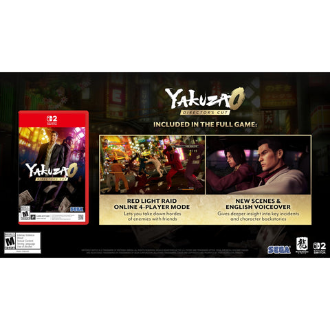 Details: DISCOVER THE DECADENCE AND DANGER OF 1988 JAPAN: Fight like hell as yakuza Kazuma Kiryu and cabaret club manager Goro Majima in an epic, interconnected crime drama. CRUSHING COMBAT: Three unique fighting styles to dynamically switch between, using your fists, makeshift weapons, and more. DIRECTOR'S CUT: Deeper insight into key incidents and character backstories with never-before-seen cutscenes. ONLINE BATTLES: Red Light Raid lets you join forces with friends and choose from 60 playable characters to take down hordes of enemies.