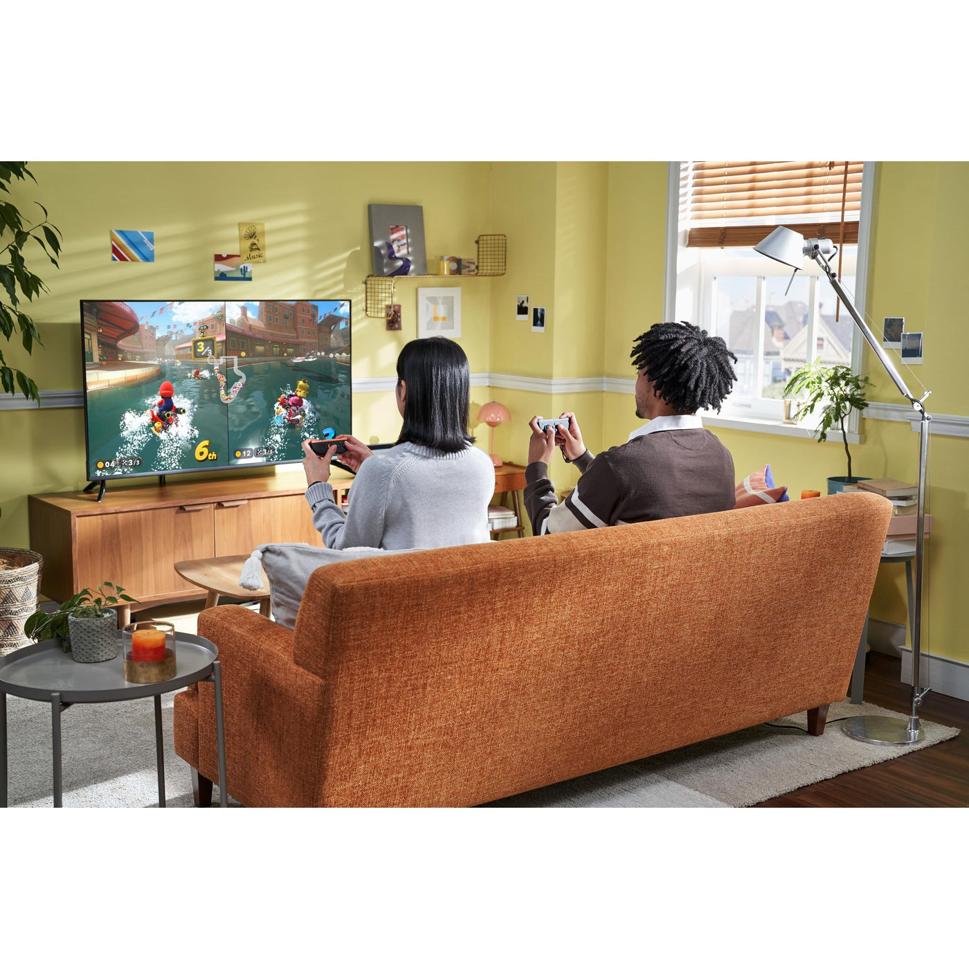 Details: Start your Nintendo Switch™ 2 adventure with this bundle that includes a system and a full game download for the Mario Kart™ World game, exclusive to Nintendo Switch 2. Nintendo Switch 2 is the next evolution of the Nintendo Switch system—packed with upgrades and fun ways to connect and play together! Discover Nintendo Switch 2 Your games will leap to life on the vivid, 7.9” 1080p screen that showcases the system’s powerful processing and graphics performance. The updated dock also supports up to 4K resolution and frame rates up to 120 fps with compatible games and TVs.* The reimagined Joy-Con™ 2 controllers snap into place with magnetic connectors—and each controller can even be used as a mouse in compatible games. Plus, you can still enjoy compatible games from your existing Nintendo Switch library**. Connect with friends and family with GameChat Once GameChat*** is setp up, press the C Button on your right Joy-Con 2 to start it up, a seamless way to voice chat with your friends, share your game screen, and connect via video chat with a compatible USB-C® camera (sold separately). Nintendo Switch 2 also has a built-in microphone that filters out noise around you for a clear experience. It’s like hanging out together…from wherever you are. GameChat Open-Access Period Until March 31, 2026, GameChat can be used without a Nintendo Switch Online membership. Afterwards, a Nintendo Switch Online membership will be required to use GameChat. Start playing right away with Mario Kart World Zip around courses in a vast world where everything is connected in the Mario Kart World game—exclusively for Nintendo Switch 2. Race along grassy plains, bustling cities, wide-open waters, big ol' volcanos, and more—plus everything in between. Play together on the same system**** with up to 4 players or go for the top spot in online*** races with up to 24 players. Start a GameChat session in Mario Kart World and whether you're competing in a race or simply exploring the open road, it's like you're zooming around together. Gear up for exclusive games and more Nintendo Switch 2 is the exclusive home to games like Mario Kart World, Donkey Kong™ Bananza, and more. You can also purchase upgrade packs for certain Nintendo Switch games like The Legend of Zelda™: Tears of the Kingdom, Super Mario Party™ Jamboree, and Kirby™ and the Forgotten Land for enhanced experiences and new content! • The next evolution of Nintendo Switch™ • One system, three play modes: TV, Tabletop, and Handheld • Larger, vivid, 7.9” LCD touch screen with support for HDR and up to 120 fps • Dock that supports 4K when connected to a compatible TV* • GameChat** lets you voice chat, share your game screen, and connect via video chat as you play • 256GB internal storage (a portion of which is used by the system), expandable with microSD Express cards (sold separately) • Nintendo Switch 2 plays compatible physical and digital Nintendo Switch games.** • Joy-Con 2 controllers attach magnetically and offer mouse controls in compatible games • Same-system multiplayer****, local wireless****, and online*** multiplayer • Mario Kart World lets you hit the open road with Mario and friends! Includes: • Nintendo Switch 2 Console • Mario Kart™ World full game download • Joy-Con 2 (L) in Light Blue • Joy-Con 2 (R) in Light Red • Nintendo Switch 2 AC Adapter • USB-C® Charging Cable • Nintendo Switch 2 Dock • Joy-Con 2 Grip • Joy-Con 2 Strap (×2) • Ultra High Speed HDMI™ Cable * TV and game must be compatible with 4K resolution. Frame rate is fixed to a maximum of 60 fps for 4K output. ** Some Nintendo Switch games may not be supported or fully compatible with Nintendo Switch 2. Visit Nintendo’s website for compatibility information. *** Internet, Nintendo Switch Online membership and Nintendo Account required for online features, including GameChat. Nintendo Switch 2 camera or compatible USB-C® camera required for video features. Not available in all countries. Terms and GameChat requirements apply. support.nintendo.com Nintendo Switch Online membership, Nintendo Switch 2 camera, and compatible USB-C® camera sold separately. **** Additional games, systems and/or accessories may be required for multiplayer mode. Games, systems and some accessories sold separately. Game Shown: ESRB Rating: E with Mild Fantasy Violence ESRB Interactive Elements: Users Interact