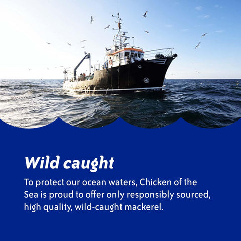 - WILD CAUGHT: To protect our ocean waters, Chicken of the Sea is proud to offer only responsibly sourced, high quality, wild caught mackerel.