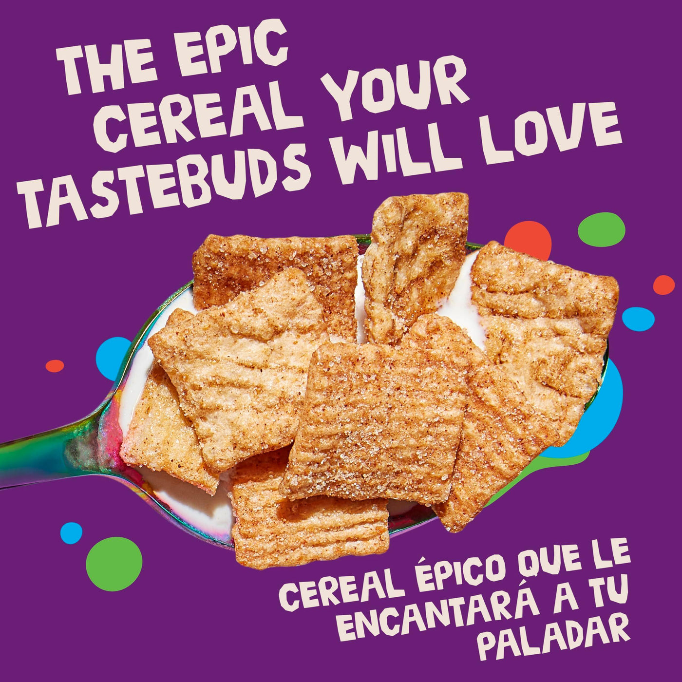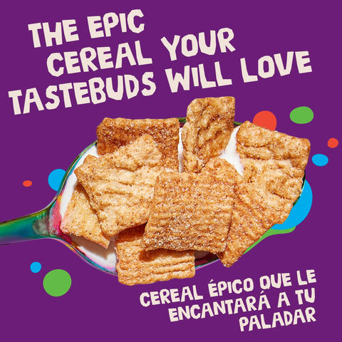 - CINNAMON CEREAL: Crispy cereal squares made from whole wheat and rice, blasted with epic cinnamon sugar CINNADUST; A morning food the whole family can enjoy