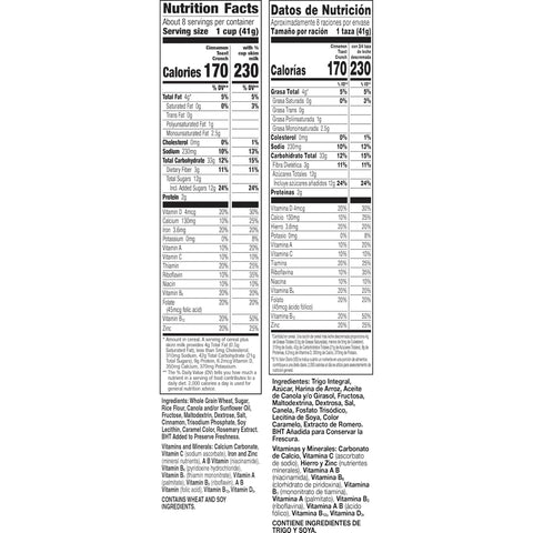 Details: Get off to an epic start with Cinnamon Toast Crunch Cereal. Every crispy square is blasted with CINNADUST, that irresistible mix of real cinnamon and sugar. Enjoy this crispy, sweetened whole wheat and rice cereal as a ready to eat breakfast food. Simply pour a bowl of cold cereal with milk and dig into that satisfying crunch. Then slurp up the CINNAMILK, the sweet and awesomely tasty cereal milk at the bottom of your bowl. Every serving of this cinnamon cereal provides 16g whole grain (at least 48g recommended daily), 12 vitamins and minerals, and a good source of calcium. Make it a part of a quick and easy breakfast for teens, kids, and the entire family. Pack some in snack bags and enjoy this crispy cereal on the go. Add it to snack mix or cereal bars recipes for lunchbox snacks. Keep a box in your pantry for mornings or to use as a crispy ice cream topping. You can also sprinkle some cinnamon-y squares over frosted cupcakes and other desserts. Whether you're looking for delicious kids snacks, trail mix ingredients, or a breakfast cereal for everyone in your household, General Mills cereals spread goodness from tots to grown-ups. Contains one cardboard box of crunchy Cinnamon Toast Crunch Breakfast Cereal, Crispy Cinnamon Cereal, 12 oz; Perfect for instant snacking, or a part of breakfast and meals.