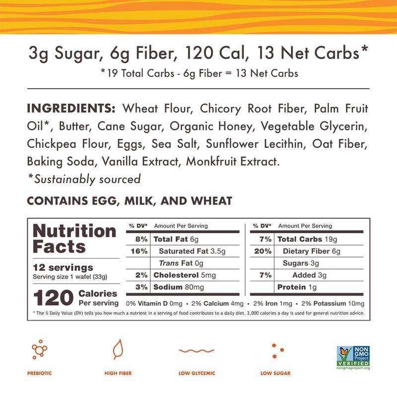 - Healthy Snack with Only 3g of Sugar: Contains 3g of Sugar, 0g Trans Fat, 120 calories, and 6g of Fiber in each 33g stroopwafel